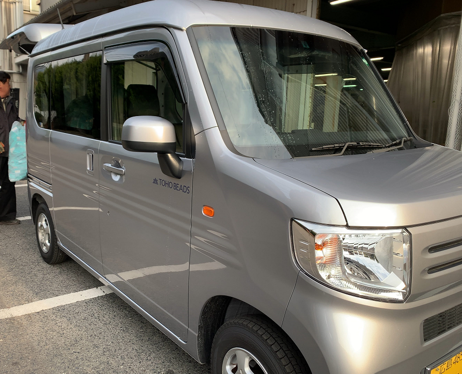 TOHOBEADS号Iwao Yamanaka2021年10月12日読了時間: 1分TOHOBEADS号広島工場で活躍するTOHOBEADS号です。軽バンなのに、荷室が広々オートマなので、とっても便利です。工場近辺の狭い、農道もスイスイって感じ。朝日にむかってパチリのTOHOBEADS号でした。